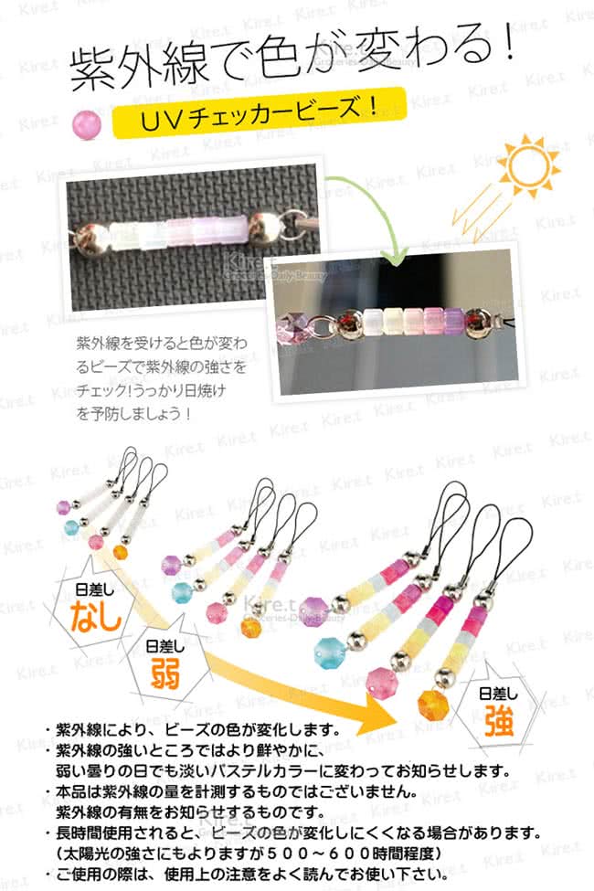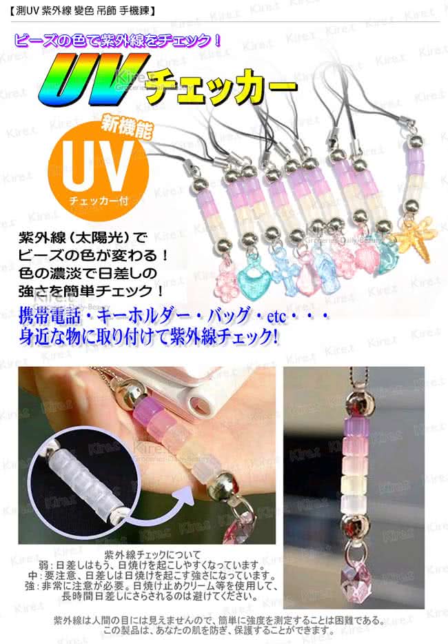 MOMO 限時特價 【kiret】UV防曬指數 紫外線變色吊飾-超值3入(美白必備 抗UV神器 紫外線手機鍊 測紫外線)